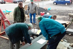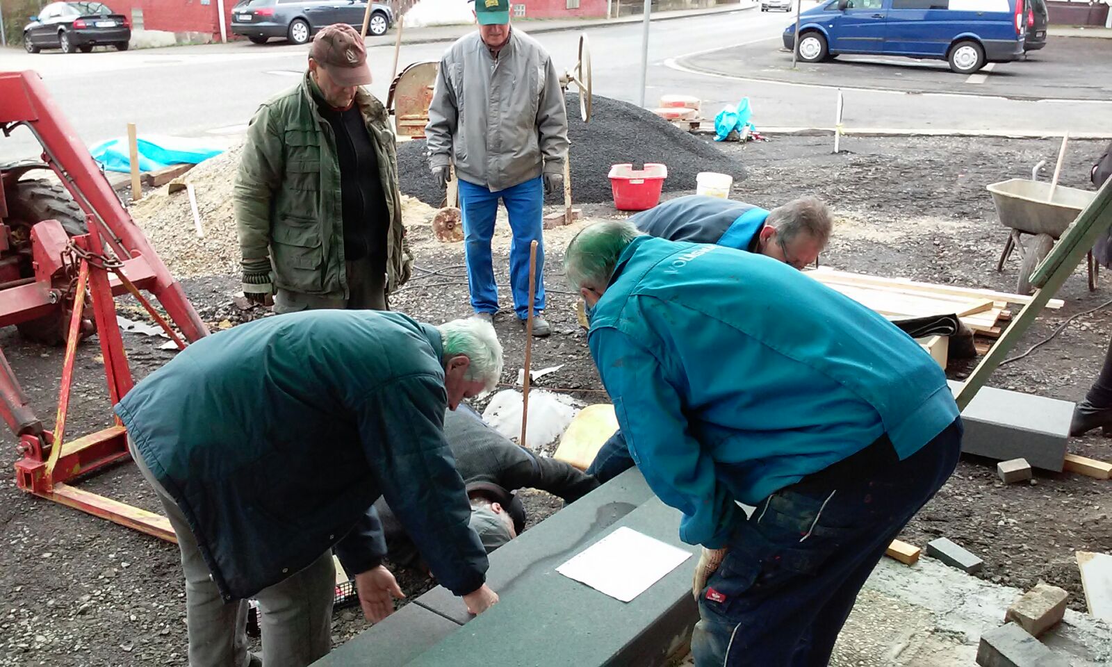 Die Bauarbeiten am Vorplatz DGH, unter der Führung von „Polier“ Karl-Heinz Heller, schreiten weiter voran. Es wurden weitere Arbeitsdienste am 03.03., 06.03., 07.03., 08.03., 09.03., 10.03., 11.03., 13.03., 14.03., 15.03., 16.03. und 18.03.2017 durchgeführt. Bei diesen Arbeitseinsätzen wurden die Grundmauern an den Bestandsgebäuden isoliert, eine Drainage verlegt und diese mit Kies verfüllt, Flächen ausgekoffert, Unkrautflies verlegt, Erdkabel für die Außenbeleuchtung verlegt, Kanaldeckel angehoben und auf die neue Höhe gebracht, Flächen mit Schotter als Unterbau verfüllt , die vorhandene Treppe wurde abgerissen und die Platten der vorhandenen Zufahrt und der Gehwege aufgenommen und abtransportiert. Alle Helfer waren voller Elan bei der Sache und wir hatten viel Spaß bei den Arbeiten. Nach getaner Arbeit wurde sich zusammengesetzt und bei guten Essen und gekühlten und heißen Getränken noch über das ein- oder andere diskutiert.